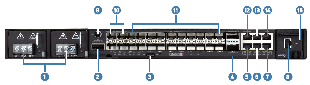 42 x 100 Gb/s QSFP28 stacking port12Stack Sync RJ-45 port