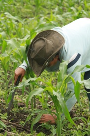 Farmer with the Fundación Entre Mujeres (LaFem) tending her crops.