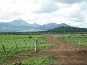 Cerro Negro (volcano in the distance) and fertile ground in the Cordillera mountain range. 10km from Malpaisillo.